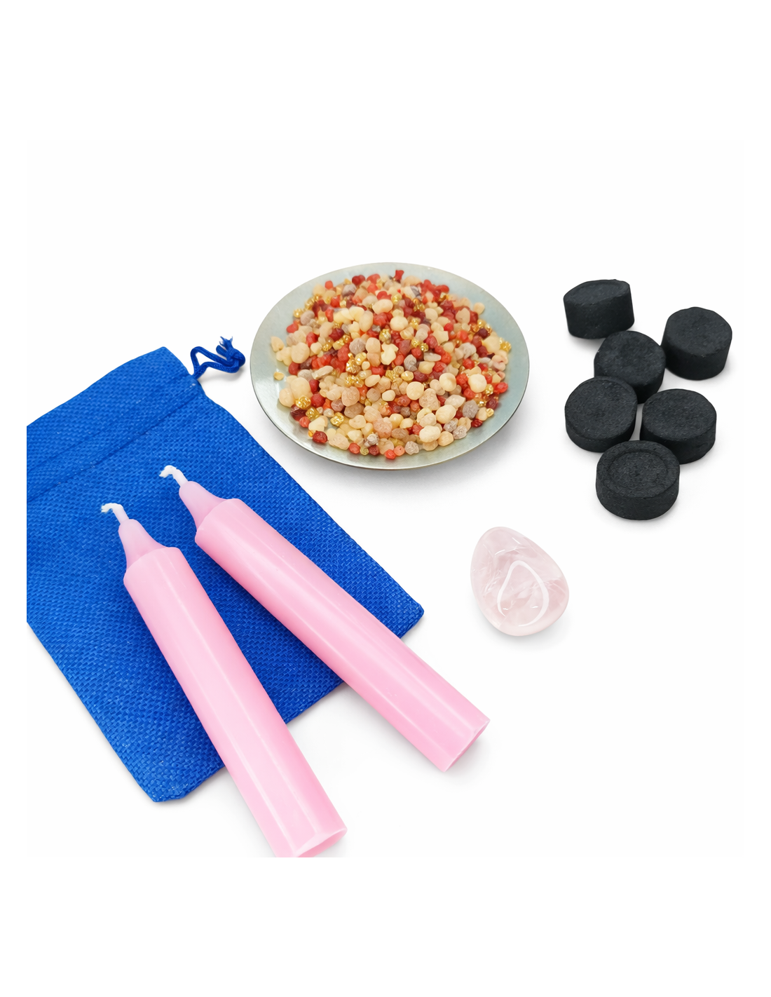 Ce kit réunit des éléments traditionnellement utilisés dans les pratiques ésotériques pour favoriser l’amour, l’équilibre émotionnel et les énergies positives.