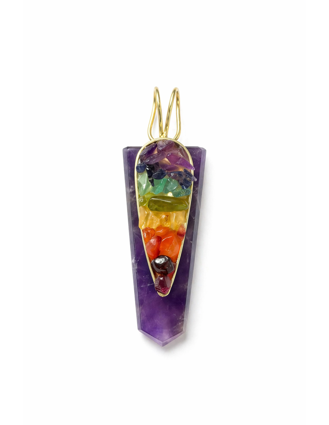 Pendentif chakra conçu pour harmoniser les centres énergétiques (racine, sacré, plexus solaire, cœur, gorge, troisième œil, couronne) et favoriser le bien-être global.