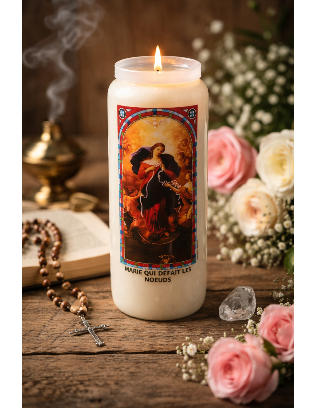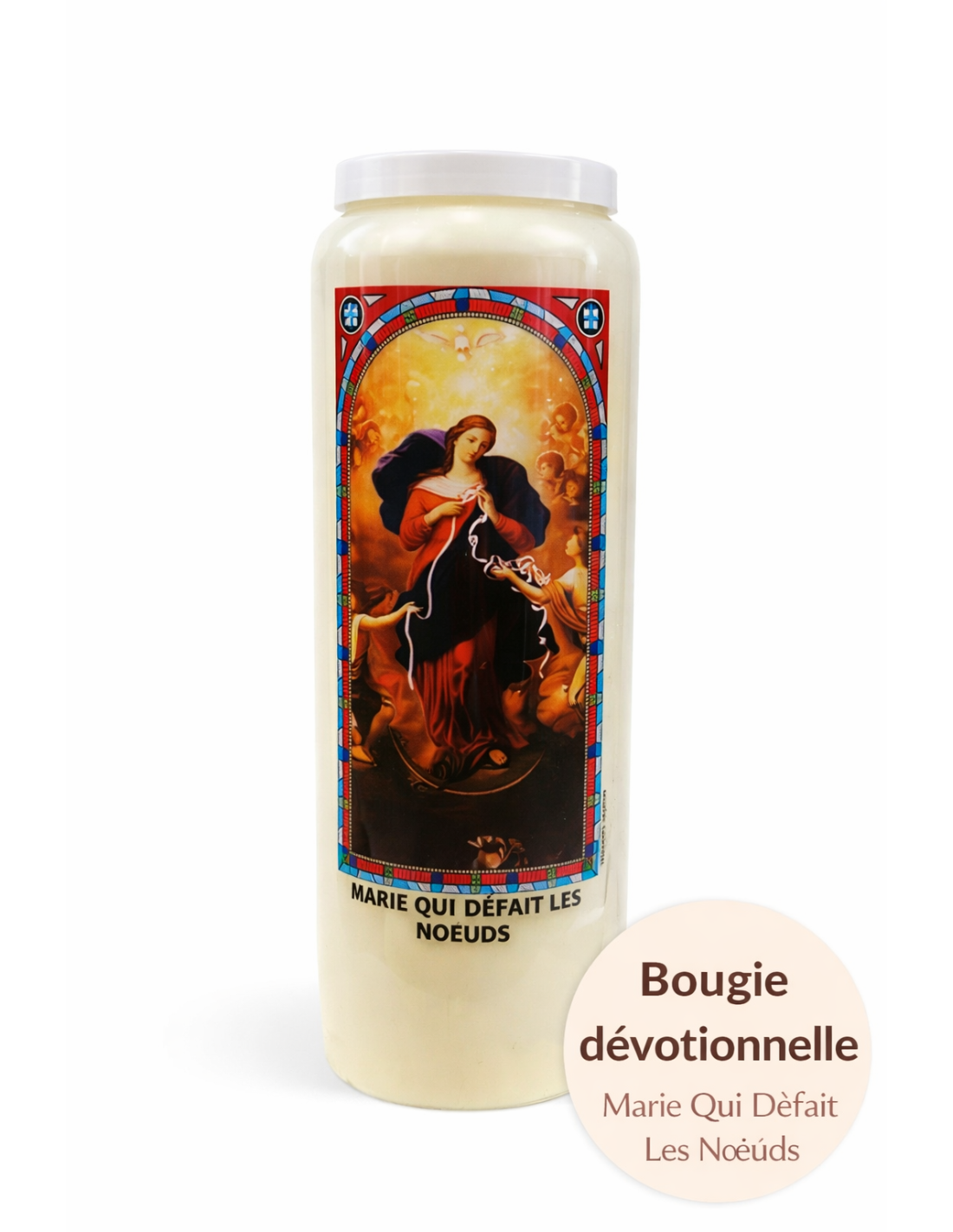 La bougie neuvaine Marie qui défait les nœuds est dédiée à l’une des dévotions mariales les plus puissantes. Elle accompagne les prières adressées à la Vierge Marie pour dénouer des situations complexes, apporter la paix intérieure, réconcilier les relations tendues, ou aider à traverser les épreuves de la vie.