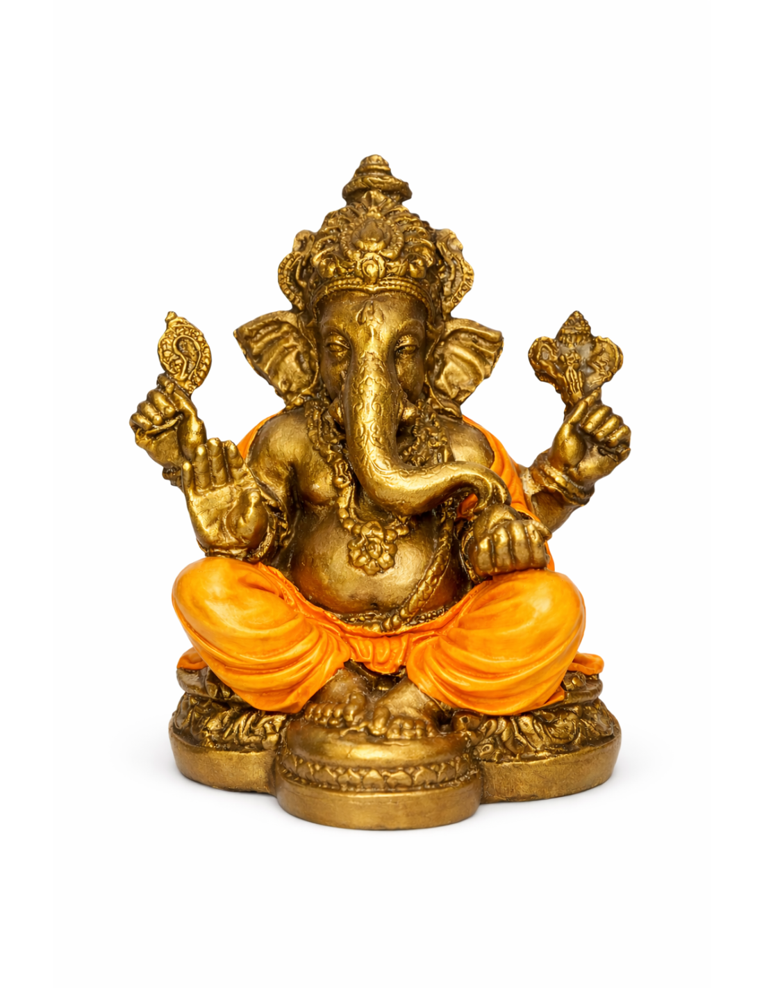 Sa finition dorée met en valeur les détails raffinés de la couronne, des ornements et des attributs sacrés. Disponible en plusieurs coloris de vêtements (turquoise, rouge, orange), elle s’adapte à toutes les ambiances zen et ésotériques.
